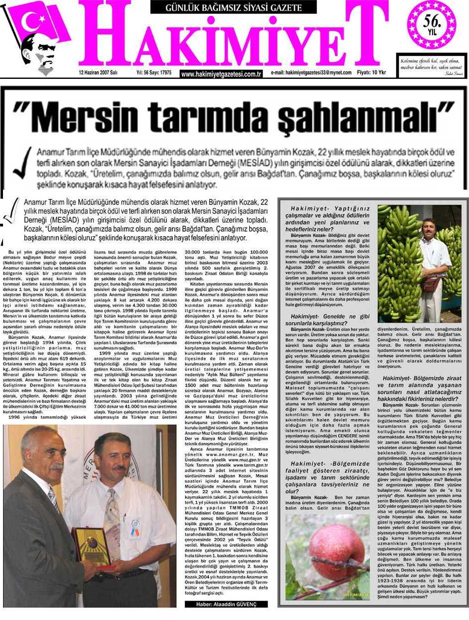 Mahmutlar’da Muz Semineri Düzenlendi… 16.02.2005 Yerel.net ve Akşam Gazetesi